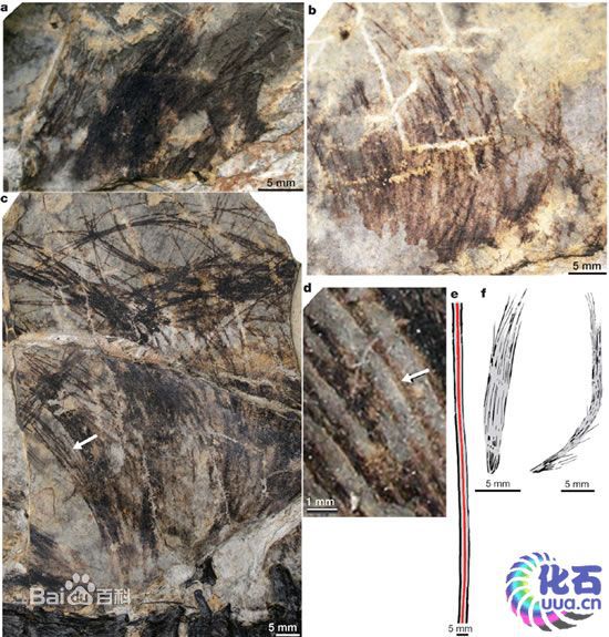 羽毛的起源和早期演化一直是學(xué)術(shù)界懸而未決的謎團(tuán)之一。近年來(lái),科學(xué)家從古生物學(xué)、胚胎發(fā)育學(xué),分子生物學(xué)等不同角度對(duì)這一問(wèn)題進(jìn)行了廣泛研究。對(duì)羽毛的現(xiàn)代生物學(xué)研究推測(cè),最早的羽毛應(yīng)當(dāng)是較長(zhǎng)的、管狀的、未分叉的絲狀結(jié)構(gòu),但苦于化石記錄中沒(méi)有明確的對(duì)應(yīng)物。