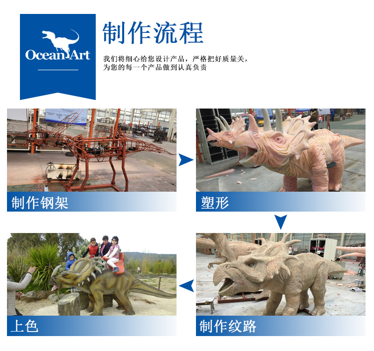 動(dòng) 作:眨眼、張嘴叫聲、頭左右頸上下、身上下左右,前肢抓動(dòng)、尾擺動(dòng)。背上可騎坐小孩隨龍互動(dòng)娛樂(lè).(或無(wú)動(dòng)作提供游客坐騎拍照)