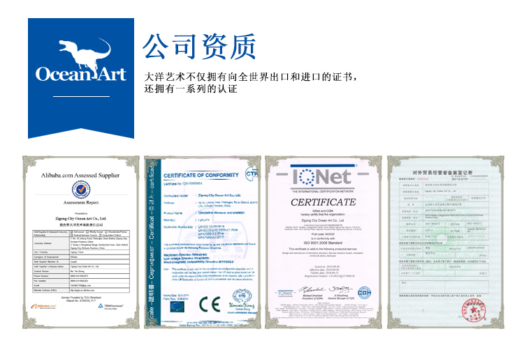 備注: 我們所制作的仿真恐龍展品和骨架模型展品被中國(guó)科學(xué)院古脊椎所鑒定為“優(yōu)秀科研作品”被譽(yù)為”侏羅紀(jì)“的在現(xiàn)者。我們將秉承客戶(hù)至上的理念,為客戶(hù)設(shè)計(jì)和制造恐龍展品,并根據(jù)客戶(hù)的要求提供3年以上質(zhì)量保證,并長(zhǎng)期為客戶(hù)提供培訓(xùn)安裝維修人員和配件等售后服務(wù),為顧客解除了恐龍展品長(zhǎng)期使用展覽的后顧之憂(yōu)。