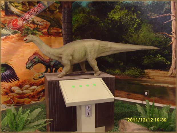 動 作: 投幣后觀眾可操作鍵盤,指揮恐龍張嘴叫聲、頭左右、頸上下、前肢擺動、尾左右擺動。