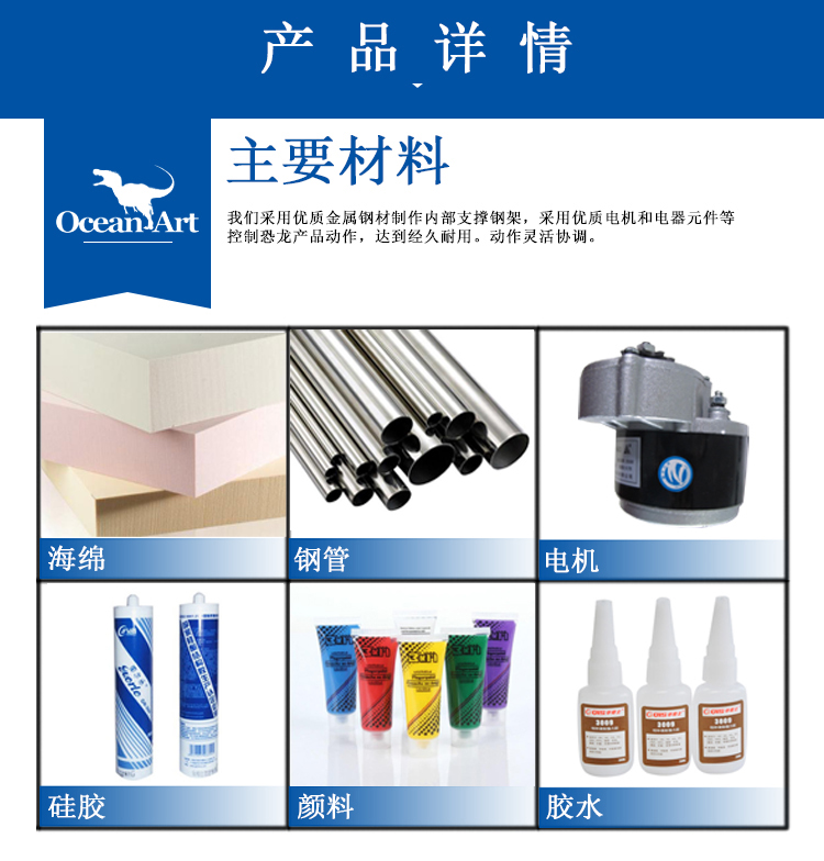 4、采用優(yōu)質(zhì)電機(jī)和電器元件控制恐龍展品動(dòng)作,達(dá)到經(jīng)久耐用動(dòng)作靈活協(xié)調(diào)的效果。